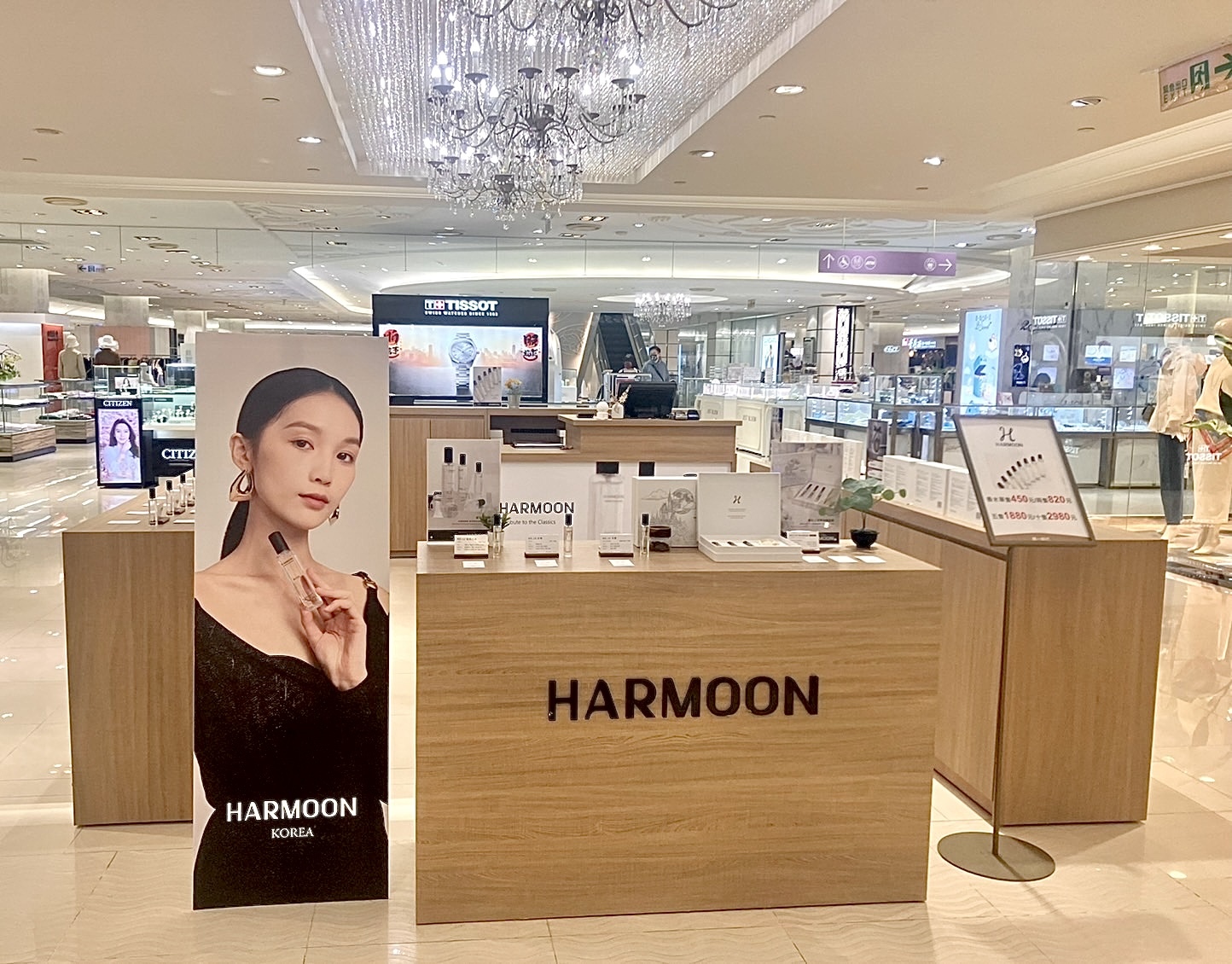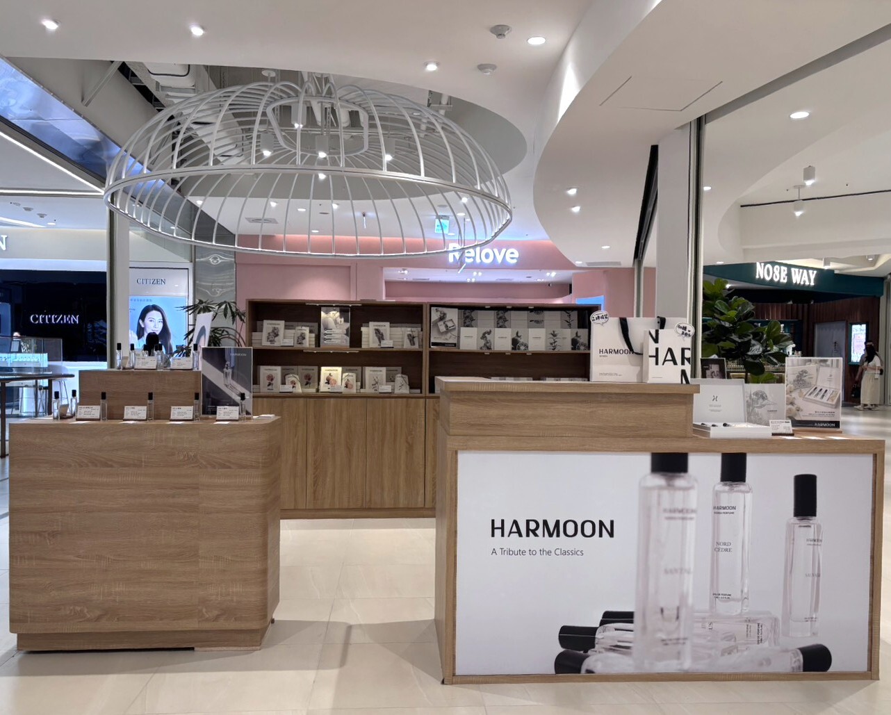 如果你位於高雄屏東,高雄夢時代的櫃位會是你的最佳選擇。我們把 HARMOON 櫃位設在夢時代 2 樓、鄰近統一時代百貨的連通道位置,設計成開放式櫃位,讓你逛街經過時可以自然地靠近、試香,不需要有「走進封閉櫃點」那種壓力。這裡不只可以試聞 HARMOON 致敬經典系列香水,也可以看到車用香氛、香氛袋等最新產品。